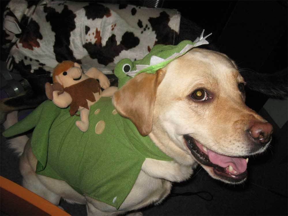 Since we have no human children to dress up, we did the next best thing and dressed up our dogs. Lucy was a dinosaur (with a caveman on her back), Molly was a cow, and Abby got the raw end of the deal....she was a chicken. I promise we didn't keep these on them for very long. Lucy and Molly didn't seem to mind, but Abby was mortified and miserable. I'm sure you can see why! Enjoy :)